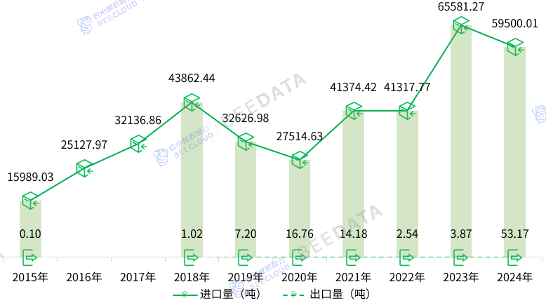 1。 2014年至2023年,全球牛油果出口量增加了184。03万吨,增幅约为133。39%,年均复合增加率约为9。87%;出口金额增加了42。82亿美元,增幅约为143。98%,年均复合增加率约为10。42%。跟着全球牛油果财产的快速成长,出格是墨西哥、肯尼亚、南非等国度/地域对国际牛油果市场供给的较着增加,全球牛油果市场处于供大于求的态势,国际牛油果出口次要集中正在墨西哥、荷兰、秘鲁、智利、哥伦比亚、摩洛哥、南非、肯尼亚等国度/地域,中国牛油果财产“走出去”面对严峻的挑和。2。 从进口来看,2015年至2024年,中国牛油果进口量增加了约合4。35万吨,增幅约为272。13%,年均复合增加率约为15。72%;进口金额增加了0。99亿美元,增幅约为219。34%,年均复合增加率约为13。77%。2024年,中国从秘鲁、智利、肯尼亚、、墨西哥、坦桑尼亚、菲律宾、南非、美国等9个国度/地域进口牛油果;中国牛油果进口金额排名前三的省域顺次是广东、上海、7月,此中,6月份牛油果进口规模较着较大。3。 从出口来看,2015年至2024年,中国牛油果出口量增加了530。68倍,年均复合增加率达100。84%;出口金额增加了16。12万美元,增加了416。63倍,年均复合增加率约为95。52%。2024年,中国牛油果出口次要从广东、、云南、福建等省域销往地域、澳门地域以及俄罗斯、新加坡、日本等地;并集中正在11月、12月,此中,11月份牛油果出口量正在全年牛油果出口量中所占的比沉约为31%,12月份牛油果出口量所占的比沉约为61。53%,逐步近似于国产牛油果产季正在月时间粒度上的分布态势。近年来,牛油果正在中国的消费量较着提拔,2013年至2022年,中国牛油果鲜食消费量增加了5。97万吨,增幅约为59%,年均复合增加率约为5。29%。而中国牛油果产量虽然也呈增加趋向,但其增速较着低于鲜食消费量增速,中国牛油果消费市场正在将来较长一段时间内仍将处于求过于供的态势,全国牛油果消费需求的满脚仍然较大程度依赖于进口。本文基于农小蜂和云果财产大脑正在运营过程中堆集的牛油果进出口商业数据,从商业规模、时间、进出口商业伙伴、进出口商业等角度,连系牛油果出产和发卖环境,对近年来中国牛油果商业情况进行阐发,为处置牛油果财产科研、加工、仓储、包拆、运输、发卖等勾当的从业从体及社会办事机构供给参考。2015年至2024年,中国牛油果进口量增加了43510。98吨(约合4。35万吨),增幅约为272。13%,年均复合增加率约为15。72%;净进口量增加了43457。91吨(约合4。35万吨),增幅约为271。8%,年均复合增加率约为15。71%。